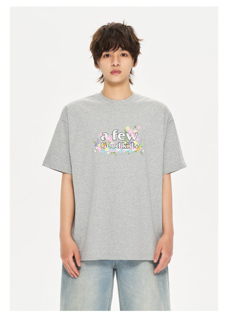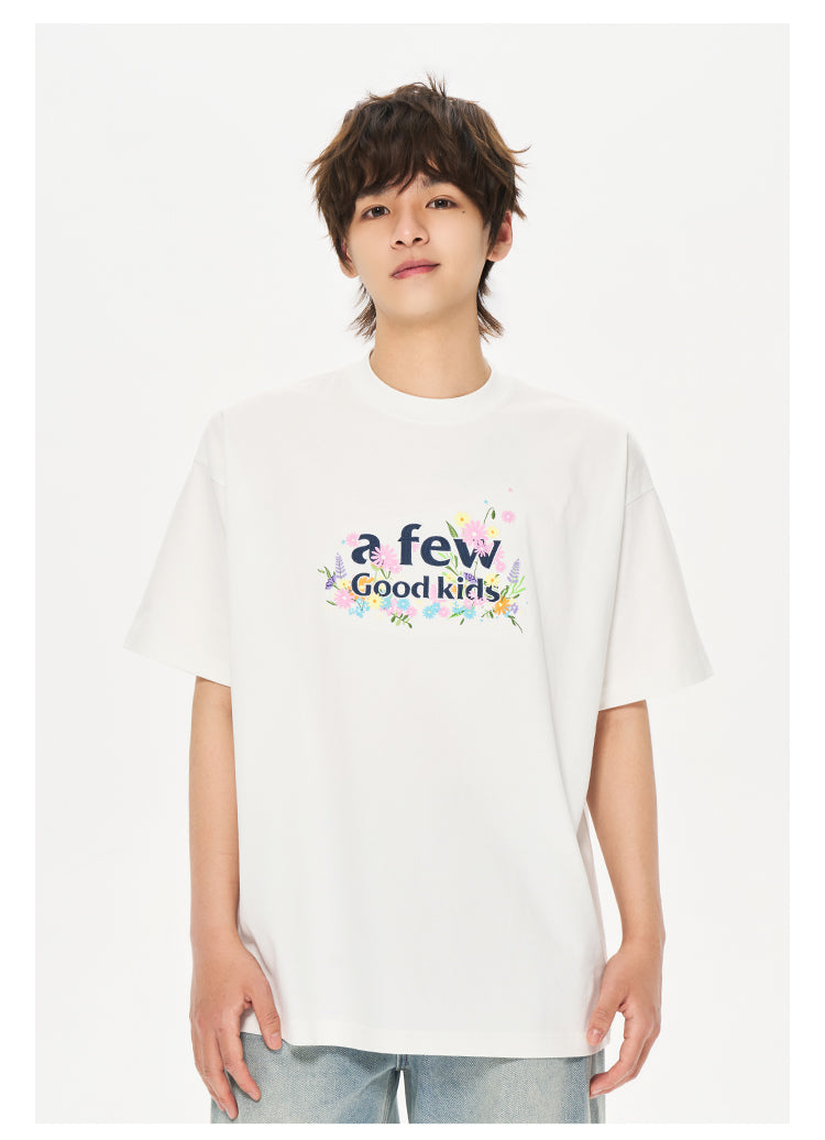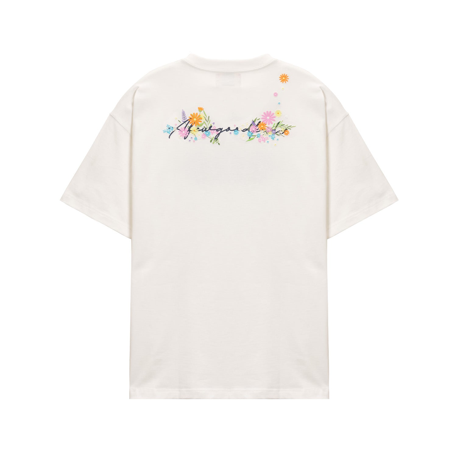 The AFGK Floral Embroidery T-Shirt features the signature logo surrounded by colorful floral embroidery, blending streetwear attitude with natural elements. Made from 100% cotton, it offers a soft yet structured feel with a relaxed fit for everyday wear.