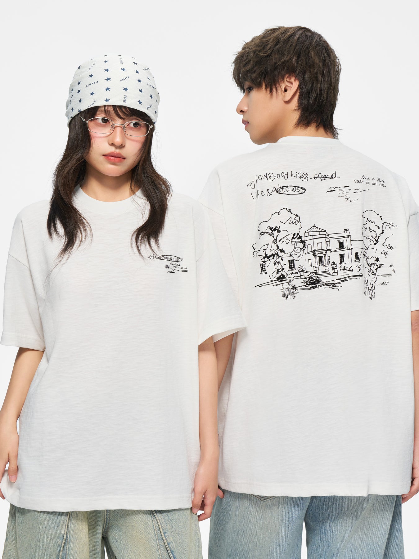 (AFGK) "Sketch Art Slub Cotton Graphic Tee"